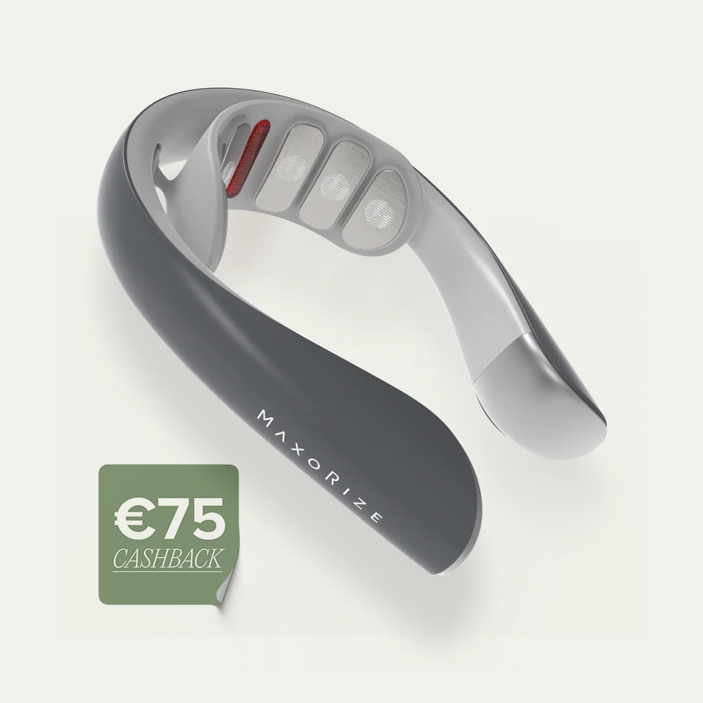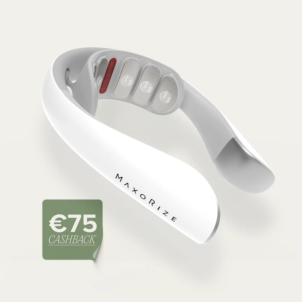 MaxoRize® Professional X delivers our signature 15-Minute Reset in a quiet, wearable form you’ll actually keep using. The app-free dial makes control effortless, while the low-profile design stays discreet under most shirts. Comfort is personal: choose from 5 modes and 10 intensity levels, with optional Heat Comfort when you want extra soothing warmth. Inside, proven wellness tech works together—TENS, EMS, gentle heat, and 630 nm red-light—in a device that weighs about 104 g, charges via USB-C, and lasts up to 5 days per charge. It’s SGS certified and compliant with CE, UKCA, and FCC standards, built to support daily focus, relaxation, and post-screen comfort.
