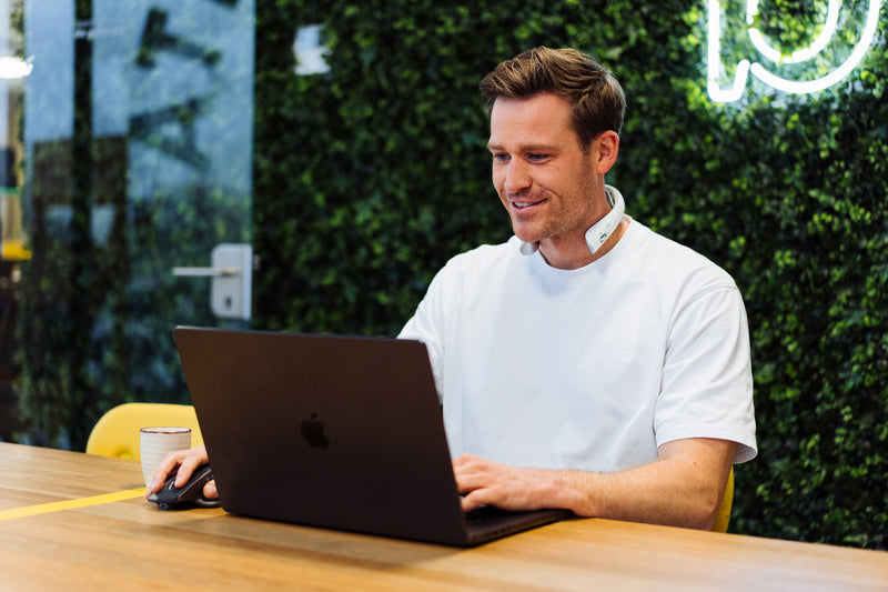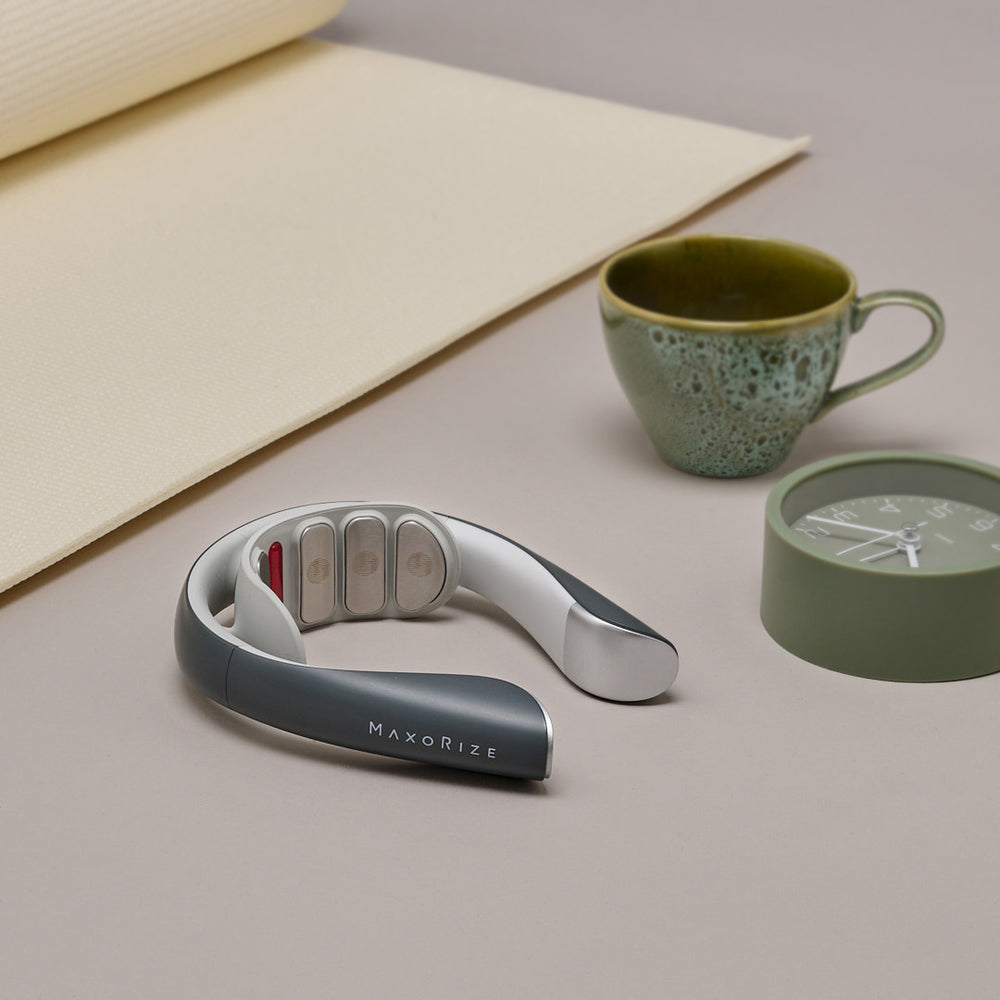 A quiet, wearable 15-Minute Reset that fits real life. Slip it on, turn the dial, and keep going—at your desk, on the commute, or while you relax. App-free, discreet, and easy to make a habit.