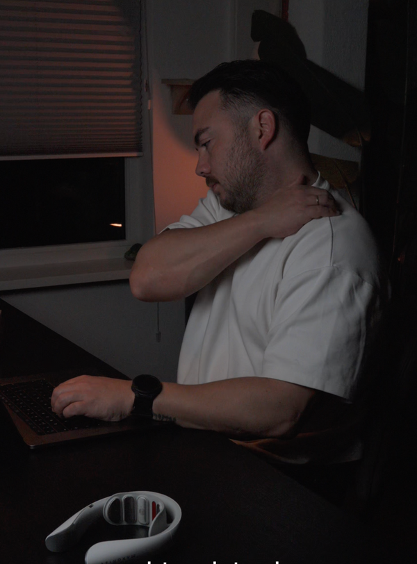 It's ultralight (104 g) and low-profile for everyday use — but it's designed for 15-minute reset, 1–2 times a day. Soft contact pads and one-size fit make it easy to wear under clothing.